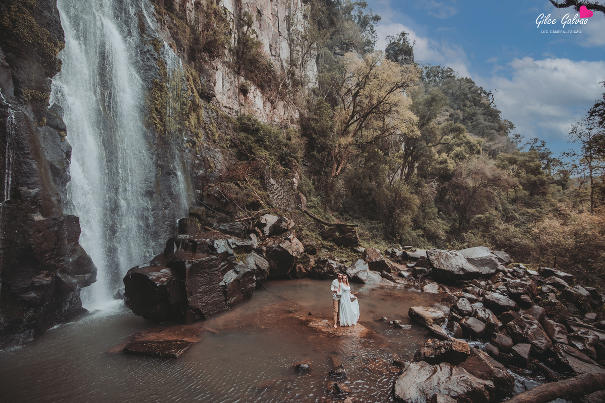 Um dos ensaios pré, mas incríveis que já fiz. Foram 05h30 de viagem de Cascavel/PR até essa cidadezinha linda, com tanta natureza e amor. Acordamos às 05hs da manhã pra dar tempo certinho de fazer tudo, uma trilha de quase 1 hora pra chegar nessa linda cachoeira, as perninhas lutaram kkk, e pra finalizar, subimos no balão, pensa na emoção, adrenalina, mas quando ele está lá no ar, a sensação de paz é indescritível.